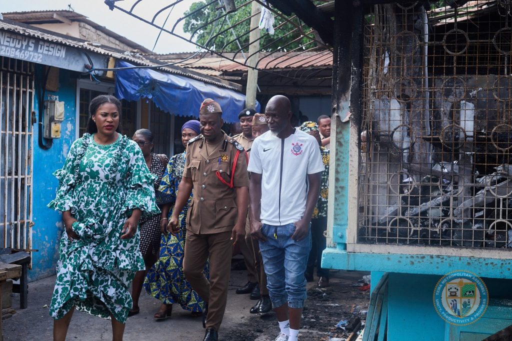 Mayor of Tema, Hon. Ebi Bright, today visited the Tema Community One Market to sympathize with traders affected by a recent fire outbreak. The incident destroyed goods in eight shops, but extensive damage was averted due to the timely intervention ...